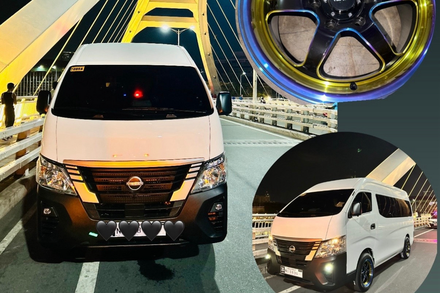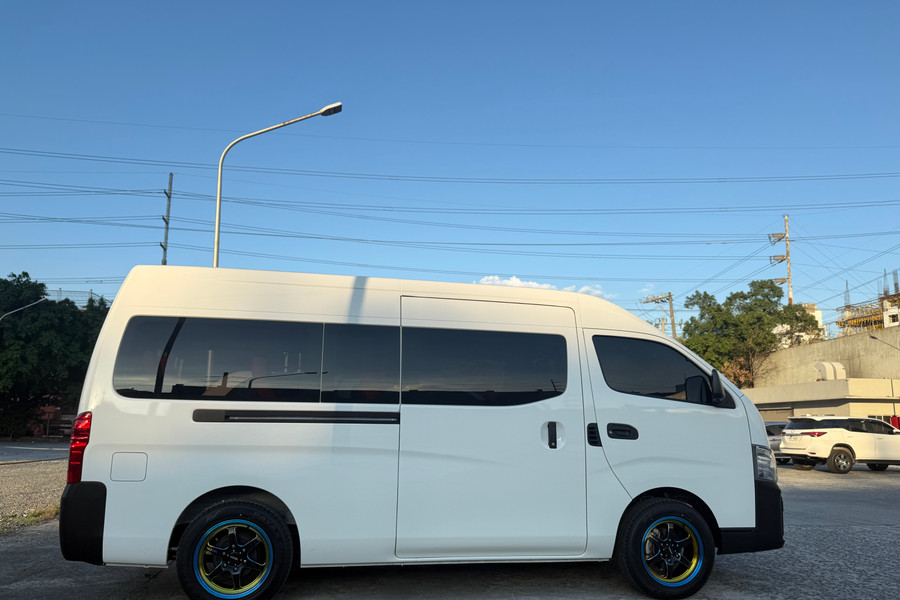 Brandnew Nissan Urvan High Roof 2025 Simple finished artista van for rent with driver 🚗 7-9 pax capacity . 🚗 2 full reclining captain seats . Other seats are a bit reclinable too 🚗 with upgraded mags and tire 🚗 360 camera 🚗 very spacious daming space for baggage front, side and back 🚗 good personality driver