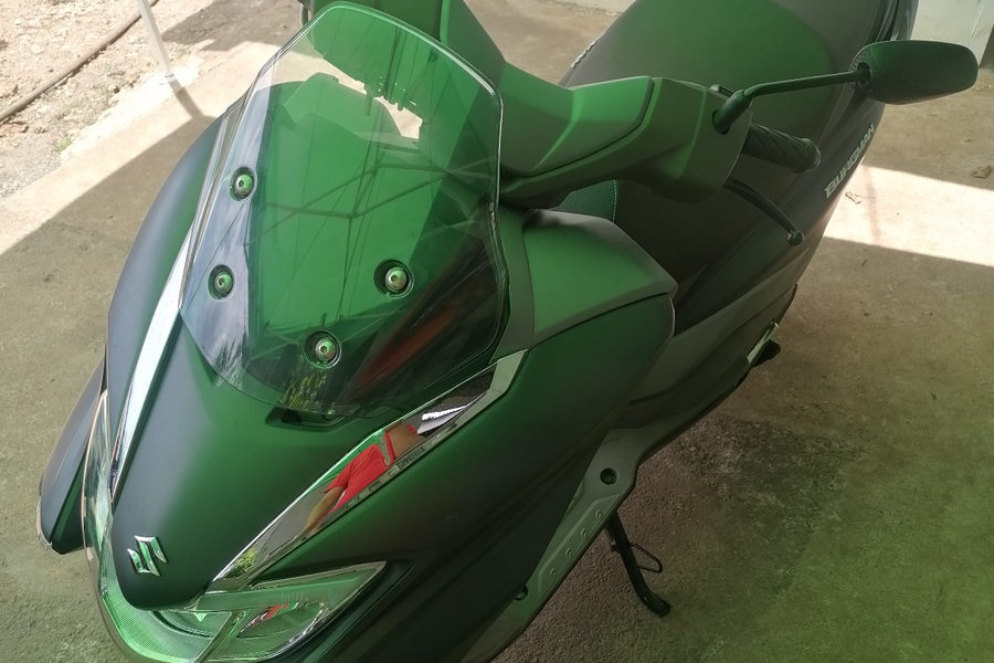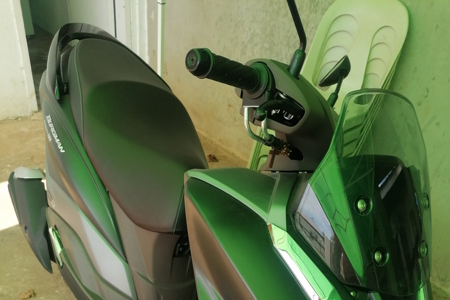The Suzuki Burgman Street 125 EX is a maxi-scooter designed for city riding, featuring a 125cc, air-cooled, fuel-injected engine with SEP-Alpha technology, Engine Auto Stop-Start (EASS) system, and a silent starter. It offers *** and practical riding experience with features like a digital instrument *** braking system, and ample under-seat storage.