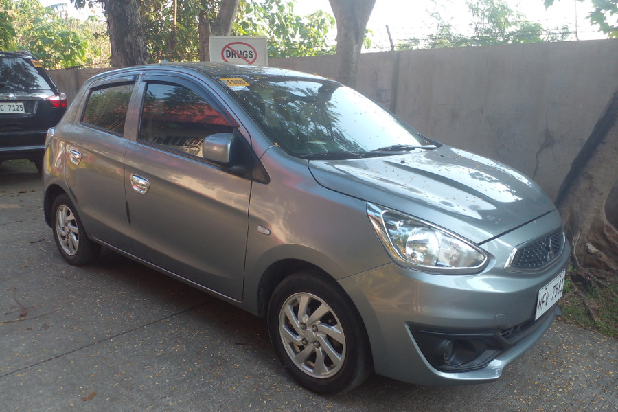 this is mitsubishi mirage hatchback small car with 4 person capacity. A driving license and ID are required. Refundable deposit 7000 pesos.